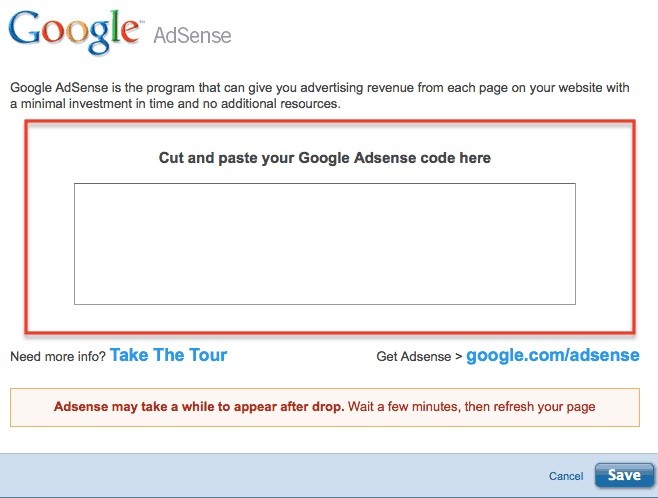3. Drag and drop a Google AdSense widget onto your page.