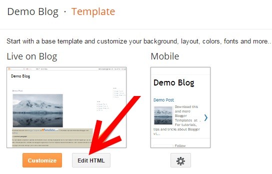 1: Go to your blogger dashboard >> Template. Click on Edit HTML button.
