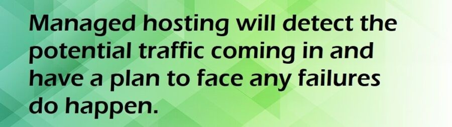 Managed hosting will detect the potential traffic coming in and have a plan to face any failures do happen. They can also install backup systems that will prevent your site from going down due to traffic load.