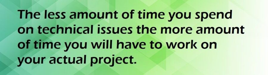 The less amount of time you spend on technical issues the more amount of time you will have to work on your actual project. This will not only be a great help in the technical help department but will also have an overall powerful effect on your productivity.