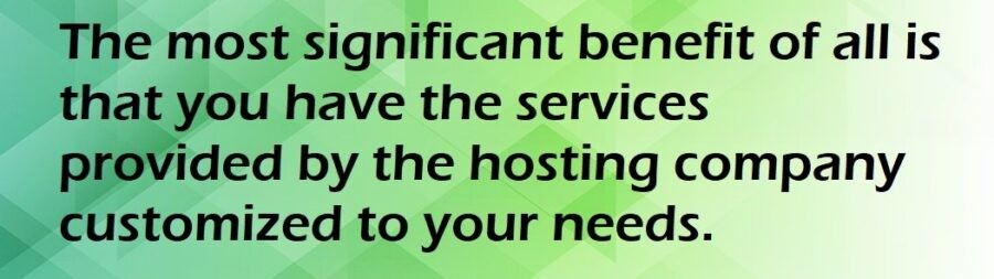 The most significant benefit of all is that you have the services provided by the hosting company customized to your needs.